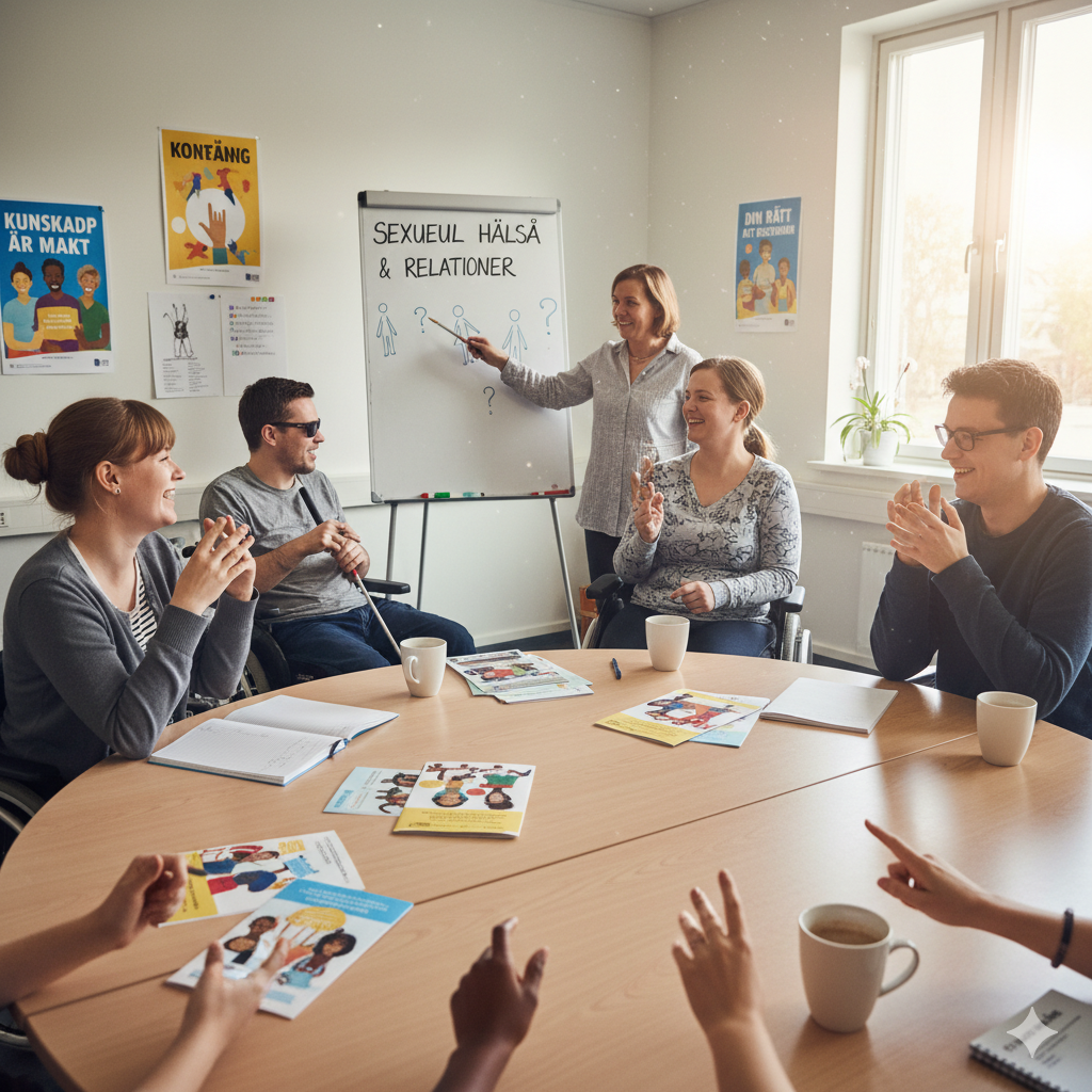 Förra veckan anordnade Independent Living Institutes projektet DRW stödcenter for migranter med funktionsnedsattning, i ett samarbete med organisationen Bosse Råd, Stöd & Kunskapscenter, en viktig och mycket uppskattad kurs om sexuell hälsa för migranter med funktionsnedsättning. Evenemanget skapade ett tryggt och öppet forum för att diskutera sexualliv, hälsa och relaterade frågor – ämnen som är … Fortsätt läsa ”Stärkande samtal: En lyckad kurs om sexuell hälsa för migranter med funktionsnedsättning”
